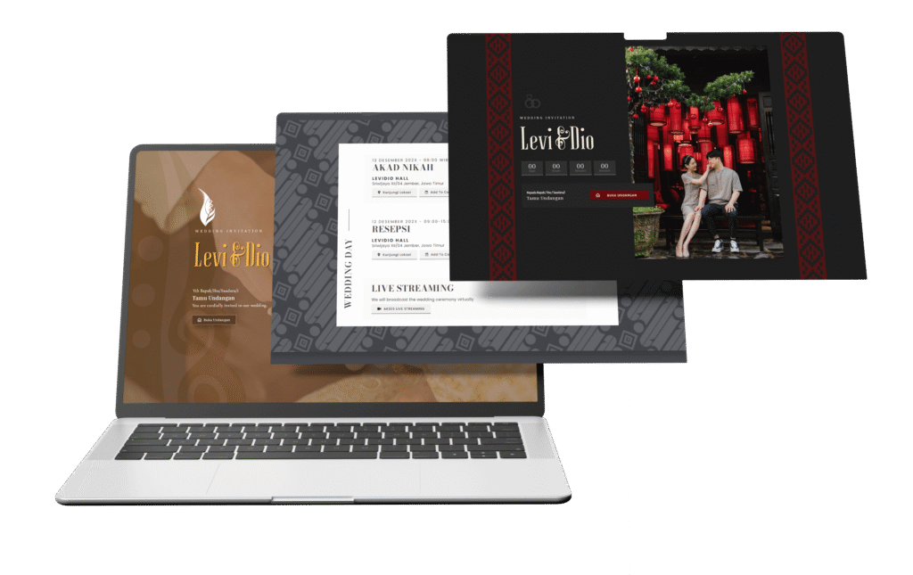Levidio Wedding menghadirkan aneka pilihan desain yang elegan, dan bisa dengan mudah anda bagikan melalui akun sosial. Harga yang sangat terjangkau dengan pengerjaan yang relatif cepat.